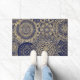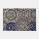 Elegant whimsical, unique faux gold glitter tribal mandalas collection design, girly henna Indian floral, filled with dots, geometric shapes, lines, stripes, triangles, circle of flowers, yellow gold, glowing dots, abstract mystic image, over a navy-blue colour background. A mystical, Aztec, lux decor, navy-blue and golden illustration, image print.