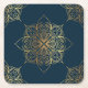 A pattern of beautiful gold mandalas repeated into an ornate damask pattern. The gold is shiny to imitate real gold foil. The mandalas are designed with intricate, hand drawn line work and placed on a deep navy blue background.
