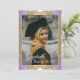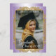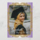 Unique and trendy congratulations graduate announcement and celebration party invitation card, with a classic faux shiny gold coloured mandala circle on a violet amethyst purple and white ombre gradient pattern background. With room to customise or personalise with a photo, the name of the graduate, class graduation year, high school and future college or university name. Let the family, friends and neighbours know there is a happy graduate ready to conquer the world, and invite everybody to come celebrate the happy event with you!