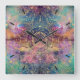 Gold Mandala Watercolor Colorful Nebula Square Wall Clock