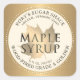 Gold Maple leaf on ivory label. The words "MAPLE SYRUP" are written in a chiseled dark gold font. Classy gold gradient border makes this label stand out.