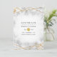 Wedding save the date card featuring a marble texture with a gold geometric frame and a marble reverse with golden influences.