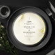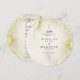 This round wedding menu is a real showstopper! The front has a beautiful gold marble texture background with elegant black calligraphy. It starts with an Arabic phrase 'wa khalaqnakum azwaja' (meaning 'And We created you in pairs'), followed by the couple's names, the wedding date, and the venue. The back is also gold marble texture, and it elegantly displays 'The Menu' at the top. The menu itself is beautifully presented in gold calligraphy, listing all the delicious starters, main courses, and desserts. It's a truly special touch for your wedding celebration.