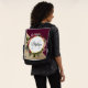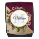 A backpack with a golden marble pattern and a solid burgundy colour layered diagonally together. A circle with a faux gold foil border which is layered over a pretty floral bouquet with roses, carnations and other flowers. Personalise with your name and monogram inside the circle.