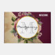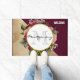 Welcome doormat with a monogram letter and name. Designed with a golden marble pattern and a solid burgundy colour layered diagonally together. A circle with a faux gold foil border which is layered over a pretty floral bouquet with roses, carnations and other flowers. Personalise with your name and monogram inside the circle.