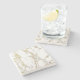 The coasters are gorgeous, a quality feel and heavy weight. They look like a precious archeological find. A rustic stone juxtaposed with a modern floral black and white print. I like the way the print goes slightly imperfect on the cut stone edges giving them a kind-of natural beauty.