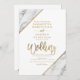 Gold marble stripes typography white wedding invitation