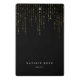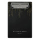 Chic clipboard features two lines of custom text in classic white lettering on a rich black background with vertical strands of faux gold foil string lights cascading from the top. Design repeats on reverse side. Please note that this clipboard is a mini size; full size version also available in our Gold Marquee collection.