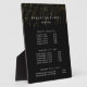 Elegant plaque with easel displays your services, price list or business information in classic white lettering on a rich black background with vertical strands of faux gold foil string lights cascading from the top. Includes three customizable headings and body text fields. To adjust layout, enter your text and then use the Customize function to change positioning and font sizes.