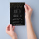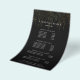 Elegant flyer design displays your services, price list or business information in classic white lettering on a rich black background accented with vertical strands of faux gold foil string lights cascading from the top. Includes four customisable headings and body text fields, and space for your business contact information along the bottom. To adjust layout, enter your text and then use the Customise function to change positioning and font sizes.