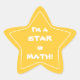 A bright gold star sticker with an interior white line star, and the words in white, "I'm a star in math!" The text is fully customisable, so you may make it say whatever you'd like. A bright and fun way to recognise a good student.