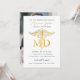 Faux gold MD and caduceus medical symbol. Works as both a graduation party invitation or a graduation announcement. Photo on the back is optional
