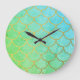 Gold Mermaid Scales Teal Turquoise Glitter Large Clock
