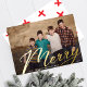 Merry Script in real gold, wishing your loved ones in style. Your photo on the back or current backing pattern. Traditional Calligraphy style. Lettering style. Big photo design. Happy, festive design. Merry Christmas in beautiful gold script.
