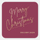 Gold Merry Christmas on Cranberrry Red Square Sticker