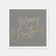 Merry Christmas text in chic fancy lettering in gold faux foil is featured on grey holiday paper napkins. MATCHING paper plates and more in our store.