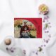 Merry Christmas in real gold foil curves around your favourite photo in a chic script on the front of these red Christmas holiday photo greeting cards. Your personal message and names are on the back. Be sure to double-check your order before adding it to your cart as what you see on the screen is what will be printed. The Live Design Service can help you with your design layout if needed.