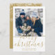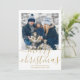 An elegant photo holiday card featuring your special favourite photo and your family name and date set in classic modern typography over a chic script merry christmas message. Designed by Thisisnotme©