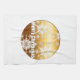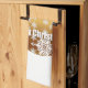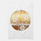 Customisable kitchen towel with white lettering "Merry Christmas" like cut out letters (not customisable) on golden background with snowflakes into a circle. You can easily add and change your text (colour, font, size and position) by clicking the personalise or customise button. Don't forget the whole collection.