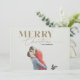 The Merry Magic Christmas Photo Card is an enchanting way to share the festive spirit with your loved ones. This photo card features a captivating full-page photo, adorned with the words "Merry Christmas" in a magical mix of fonts in gold coloured type. The word "Merry" takes centre stage in a bold serif font, emphasizing its joyful significance, while "Christmas" is delicately presented in a handwritten script, adding a touch of warmth and charm.