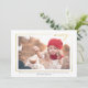 This holiday card features the text Merry in a handwritten script font in faux gold and a frame. The back features a gold diagonal pattern with an optional second photo