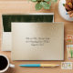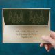 Faux gold metallic with green background and faux fairy pine trees on back flap. Return address on bottom. Simple and yet so beautiful and elegant. Make a statement with this chic envelope. All your guests will love receiving their invitation in such a lovely envelope. Great for weddings, Christmas, New Year’s.