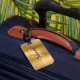 I was happy with the acrylic tag but it came with a thin leather strap to attach the tag to luggage (like a cat collar). I replaced the strap with a metal ring off of a key ring as the leather strap would come undone or break easily as luggage is sometimes handled without much care by airlines. Printing is great. Colours and positioning of the design I put on the tag were perfect. Very pleased.