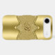 Gold tones shiny metallic look with diamonds pattern. Custom and optional monogram.