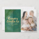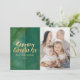 Gold metallic seasons greetings Christmas / holiday photo card. With hand painted green design and gold effect script. This modern holiday card is part of a coordinating holiday collection.