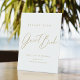 Modern script minimalist wedding guest book sign in gold colour, simple and elegant.