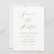 Announce your wedding date with this simple and elegant save the date flat card. It features dainty gold script, bold typography and stripes pattern. Personalise by adding names and other wedding details.