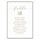 Customisable table number seating plan. It features a gold whimsical script and classic typography. Personalise by adding your own details. This minimalist table seating plan is perfect for weddings, baby showers, bridal showers, birthdays, and so much more.