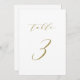 Table 3. An elegant table numbers card featuring a gold minimalist script and classic typography. This gold and white table number is perfect for weddings, graduation, baby showers, bridal showers and other events. Other number and colour are available.