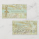 This is a distinctive and pretty business card for a dance studio, or dance instructor. It features a pretty gold, mint green, and white abstract marbled background, with a mint green name banner. The banner is thinly lined in shiny gold. Your custom text is in gold, also. A darker gold ballerina strikes a pose on the left side of the front. The back of the card has the same background, with a field for your information in grey. Beautiful!