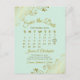 Gold & Mint Green Wedding Save the Date Calendar Announcement Postcard