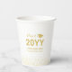This modern graduation party paper cup features gold typography "Class of 20YY (graduation year)" and a graduation cap graphic with a confetti background. You can customize the text in black. More color options and party supplies are available at my shop BaraBomDesign.