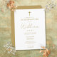 This elegant gold confirmation invitation postcard can be personalised with your information in chic typography. Designed by Thisisnotme©
