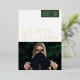This modern graduation announcement features a single horizontal photo on the bottom accented by large type with the graduate's name in real gold foil. The school name and graduation year are highlighted on the top of the announcement. This graduation announcement has a professional and business orientated look, perfect for highlighting the graduate's successes. The back of the announcement contains two additional photos which can be used to showcase childhood photos of the graduate growing up, along with a space for a longer message. The accent colour can be adjusted to match your school's colours.