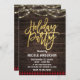 Gold Modern Script Holiday Party Rustic Wood Plaid Invitation