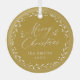Gold Modern script Merry Christmas Holiday Metal O Glass Tree Decoration