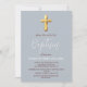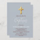 Gold Modern Simple Dusty Blue Cross Baptism Invitation