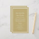 Elegant, minimalist classic yellow gold-tone colour & white budget wedding ceremony program features a simple modern design with a double framed border in crisp white on a trendy gold-tone colour background. Traditional, classic wording provides timeless sophistication. Personalise wedding ceremony details for your guests in trendy script & lettering. The back of the card matches with white lettering on a gold-tone colour background and is all about your wedding party. For optimal results replace template details with your own details leaving space between paragraphs as in the example. Capitalise & use all lower case where specified. Feel free to contact me at invitationsuites@gmail.com or with the message feature if you have questions regarding this or any of our products or have a custom colour request.