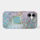 This unique case combines traditional art deco with a pretty marbling effect that results in a modern, chic design. Colours used include aqua blue, violet pink, and gold. A slight distressing adds extra interest. At the centre is a double gold lined aqua banner with your monogram in matching gold.
