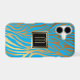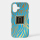 This elegant phone case gives a modern look to the traditional tiger stripe pattern in bright blue on a burnished gold background. Your monogram is in gold at the centre of a black square banner which is double lined in shiny gold. Classy and timeless! Thanks to www.ephrazydesign.etsy.com for graphics used in this design.