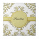 Gold monogram ceramic tile with gold floral damask pattern and space you can add your name. Great for wedding favour to add your names and wedding date or use as an award tile.