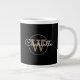 Gold Monogram Elegant Girly Script Black Large Coffee Mug