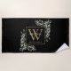 Gold Monogram Elegant Modern Greenery Black Beach Towel