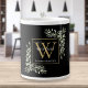 Gold Monogram Elegant Modern Greenery Black Large Coffee Mug