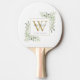 Elegant watercolor greenery leaves monogram name ping pong paddle featuring a gold monogram initial. Designed by Thisisnotme©