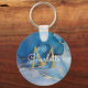 Gold Monogram Elegant Script Blue Agate Geode Key Ring